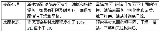 施工条件 ■ 请不要在潮湿或寒冷的天气(气温低于5℃,相对温度大于85%)情况下施工,否则不能达到预期的涂装效果。